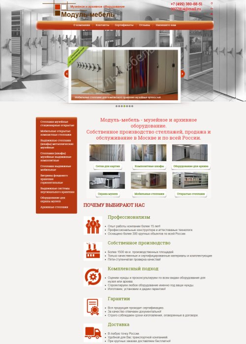 Рекламная страница (лендинг) завода мобильных стеллажей